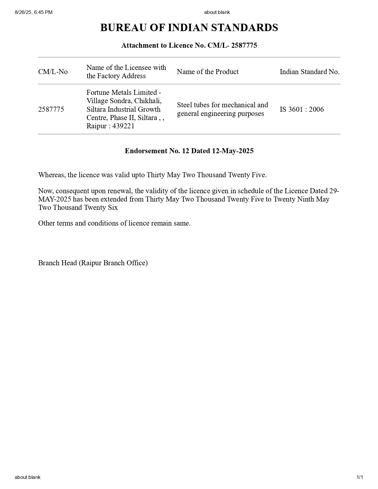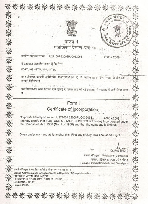Incorporation Certificate