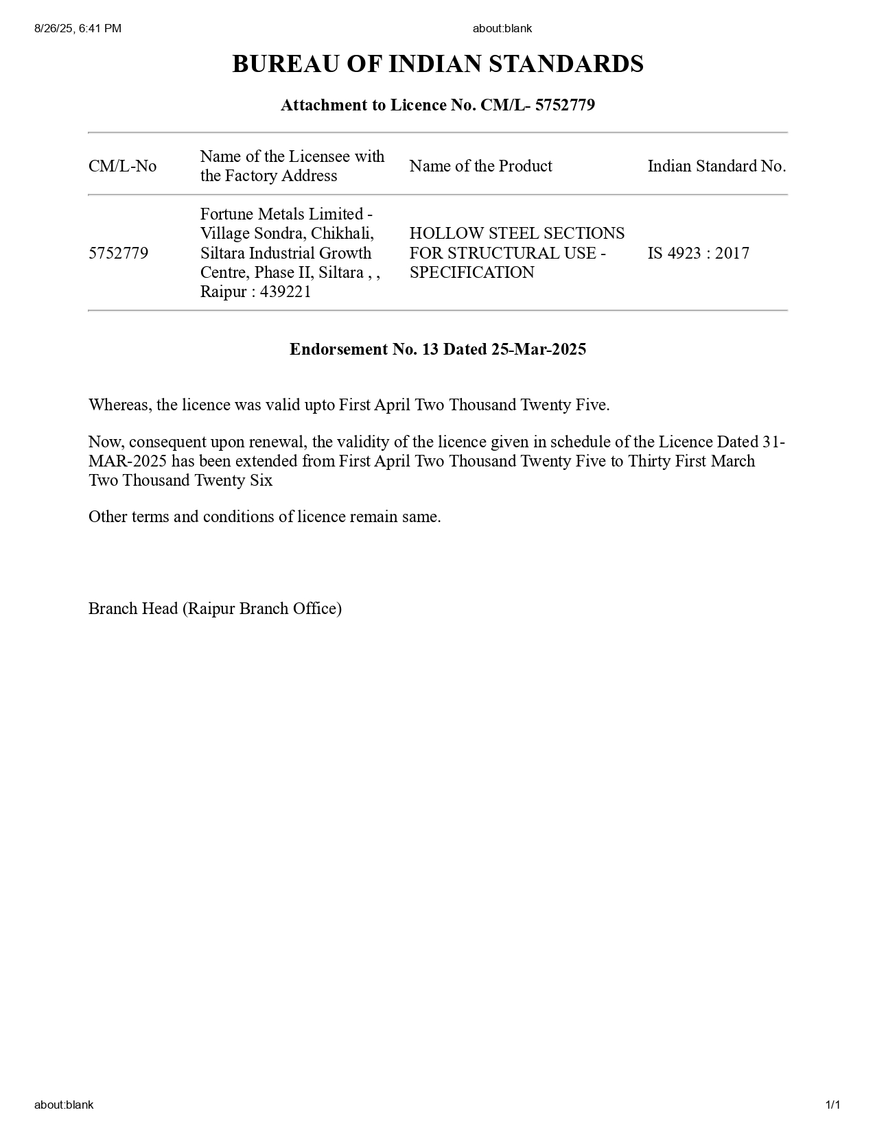 Renewal IS 18573